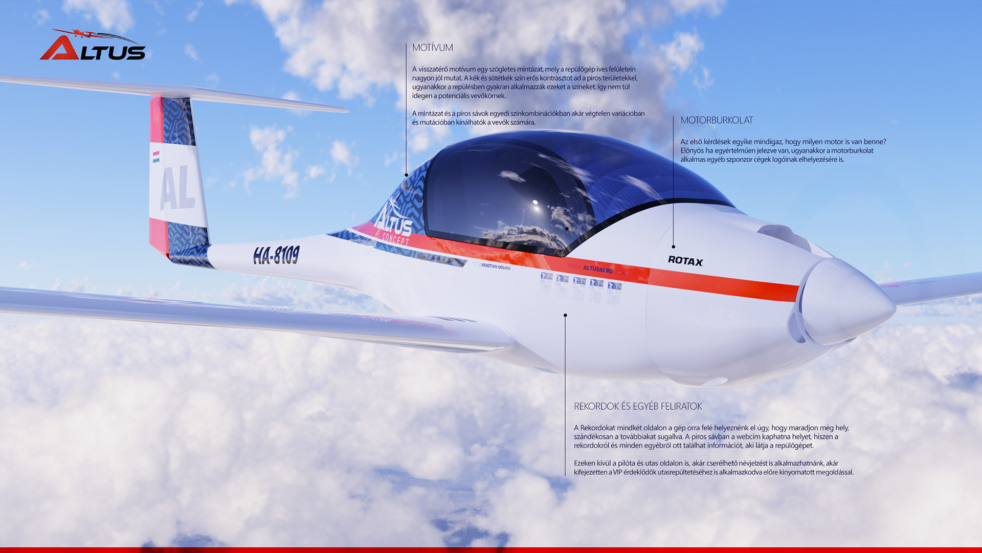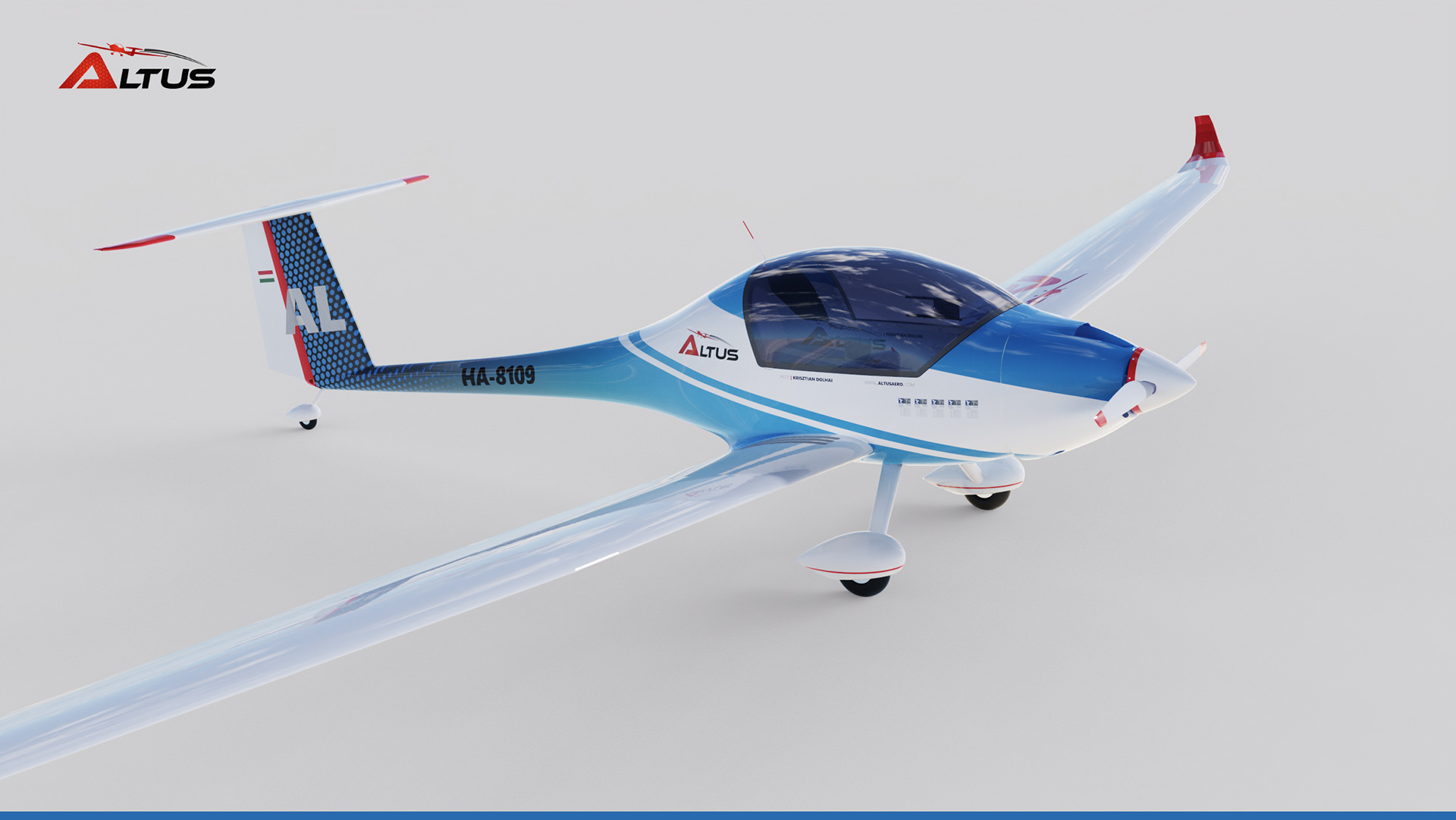 The Altus is an ultra-light aircraft and motorglider that holds 5 official world records in its class. The designer is Krisztián Dolhai (ALTUSAERO.COM).